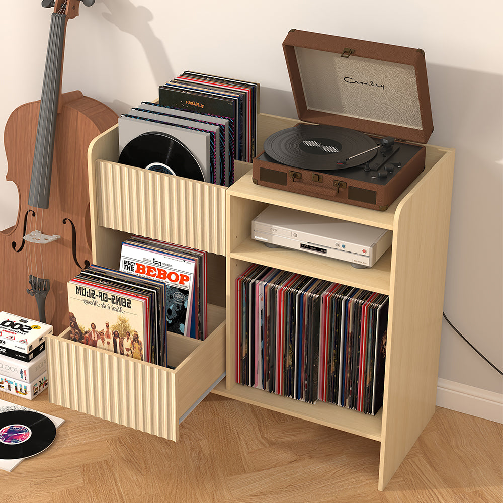 Featuring multiple open compartments, it provides generous room for organizing records, books, and electronic devices. You can neatly categorize your items, making them easily accessible.