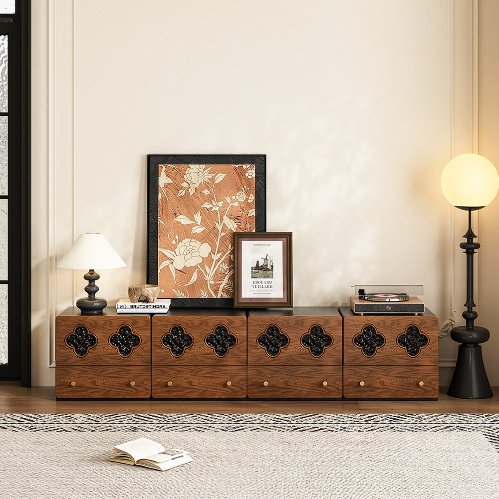This Proist Cabinet is made of ash wood. Featuring one large drawers, it offers plenty of storage for books, remotes, and photo albums. Tempered glass with metal pulls ensures durability and aesthetics. You can choose a certain number of cabinets to combine according to your needs and preferences. This flexibility allows the combined TV cabinet to adapt to various home styles and space layouts, bringing you unlimited matching possibilities.
