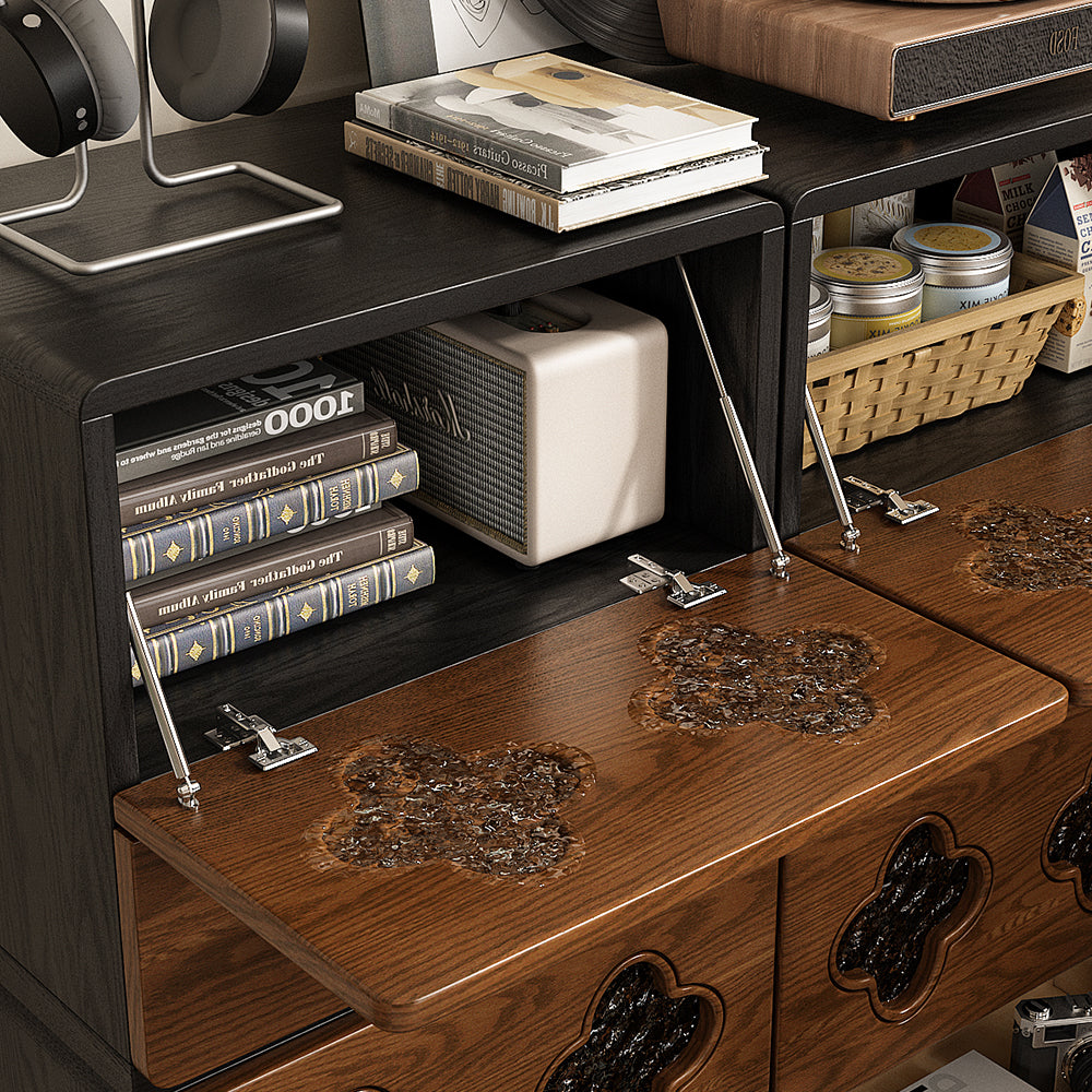 Proist Floral Walnut Mid-Century Modern Cabinet with Storage