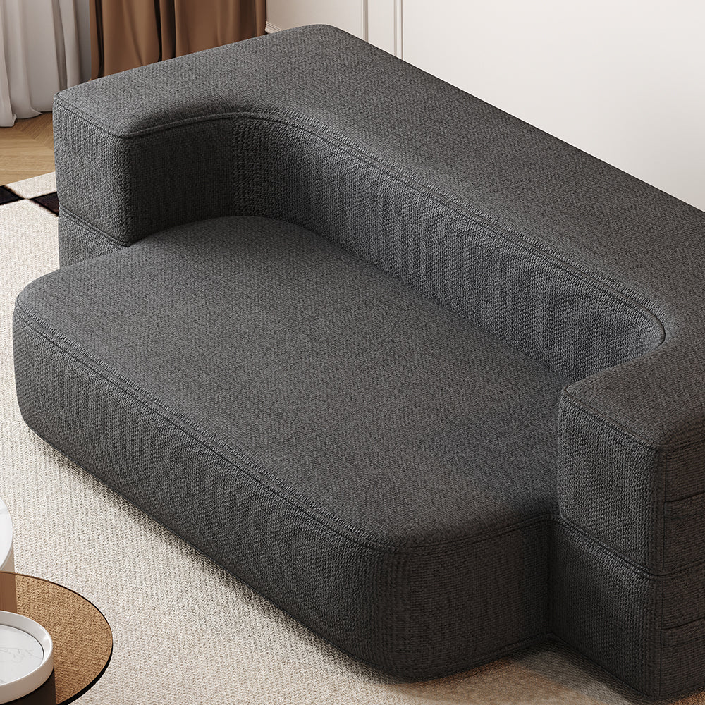 The Roblok Sleeper Sofa, crafted with soft boucle fabric to elevate your living space to new heights of sophistication and comfort.