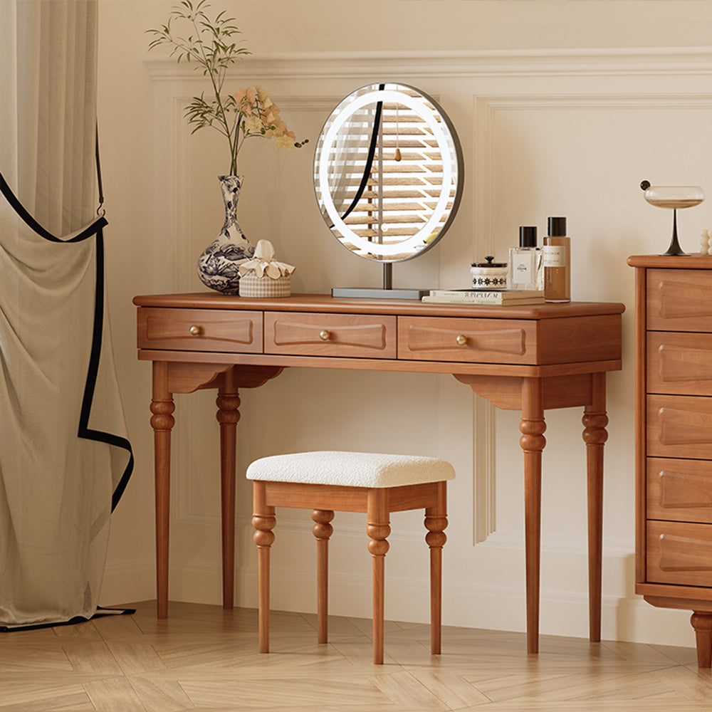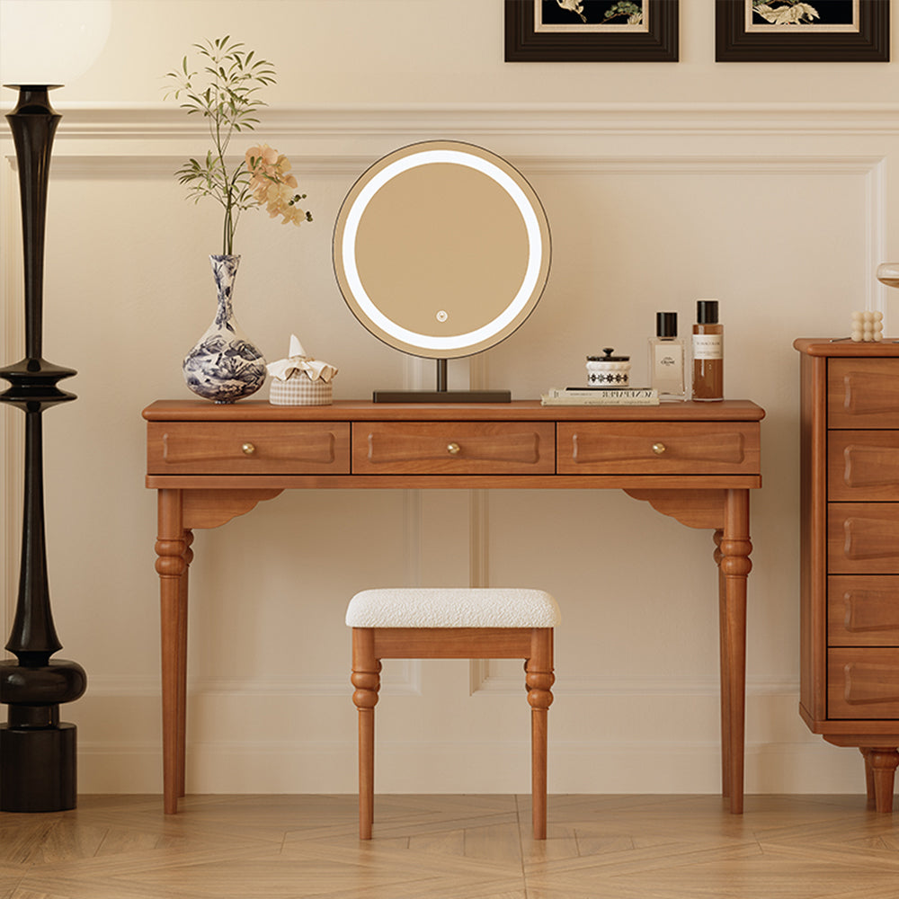 Comless Natural Mid-Century Modern Makeup Vanity with 3-Drawer & Seat