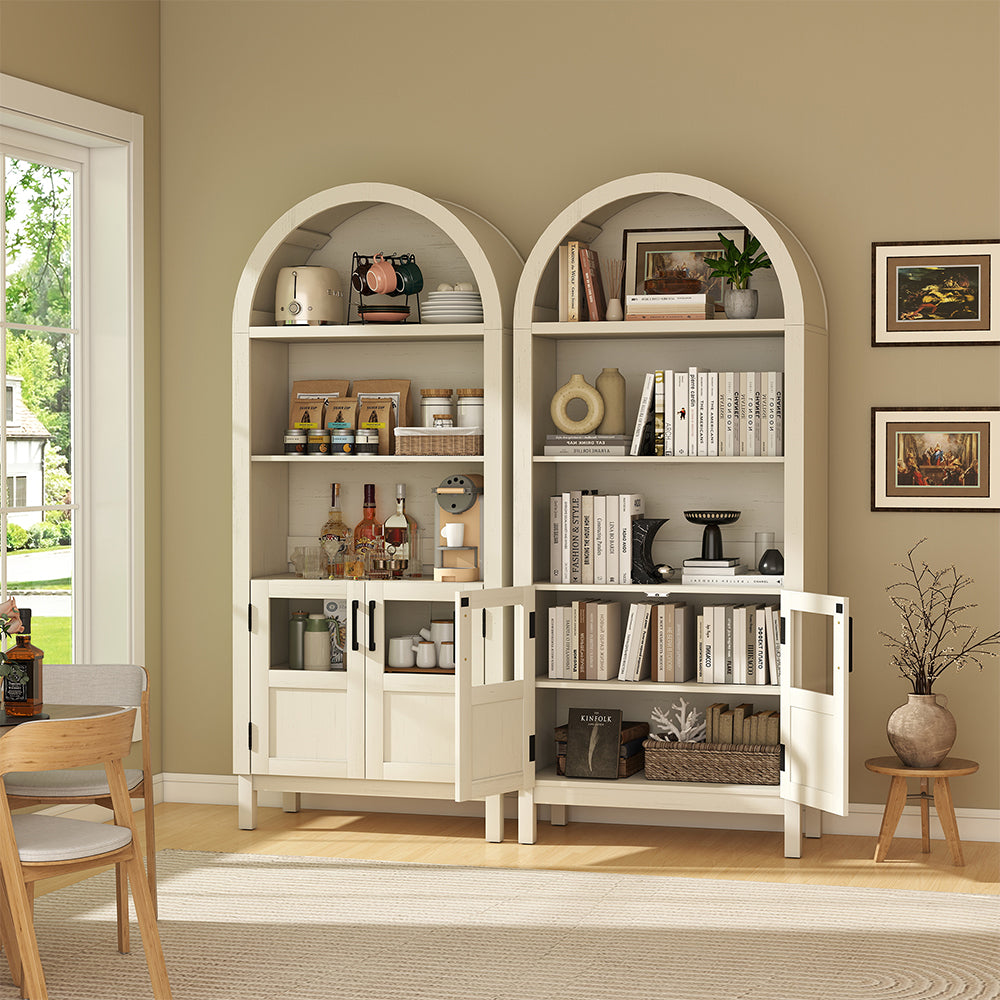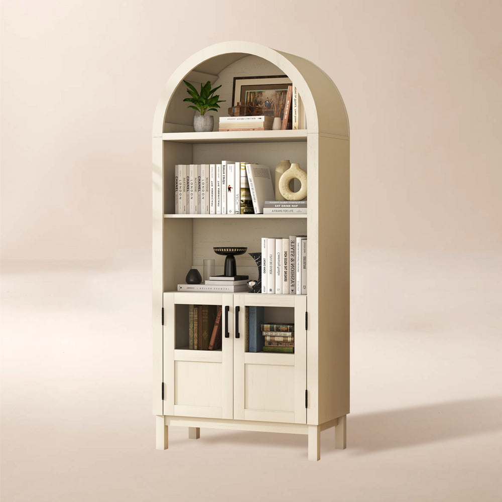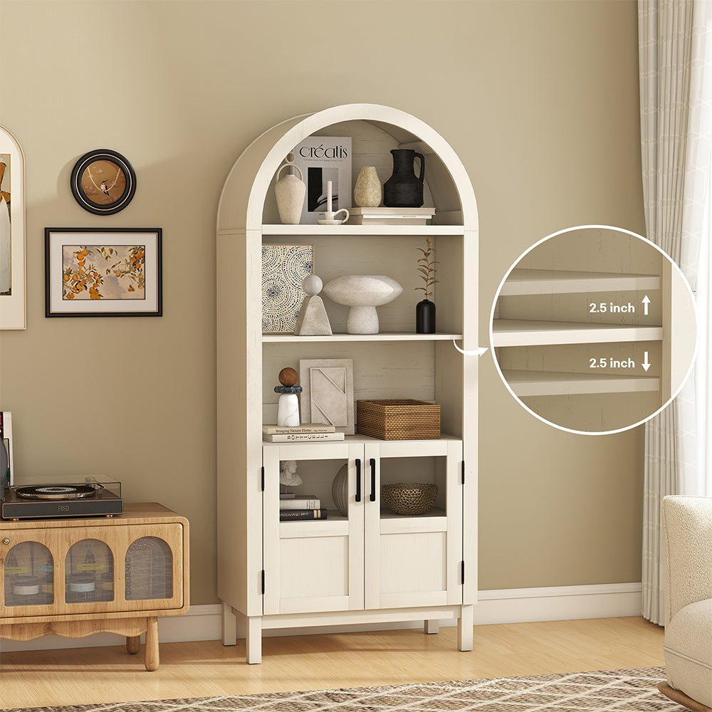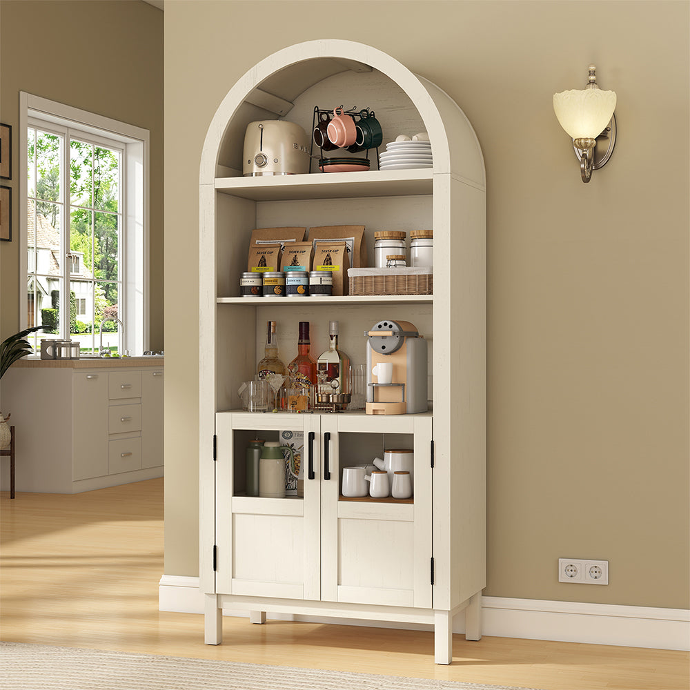 Wixio Arched Cabinet 70" Tall Cabinet with Glass Doors and Open Adjustable Shelves in White