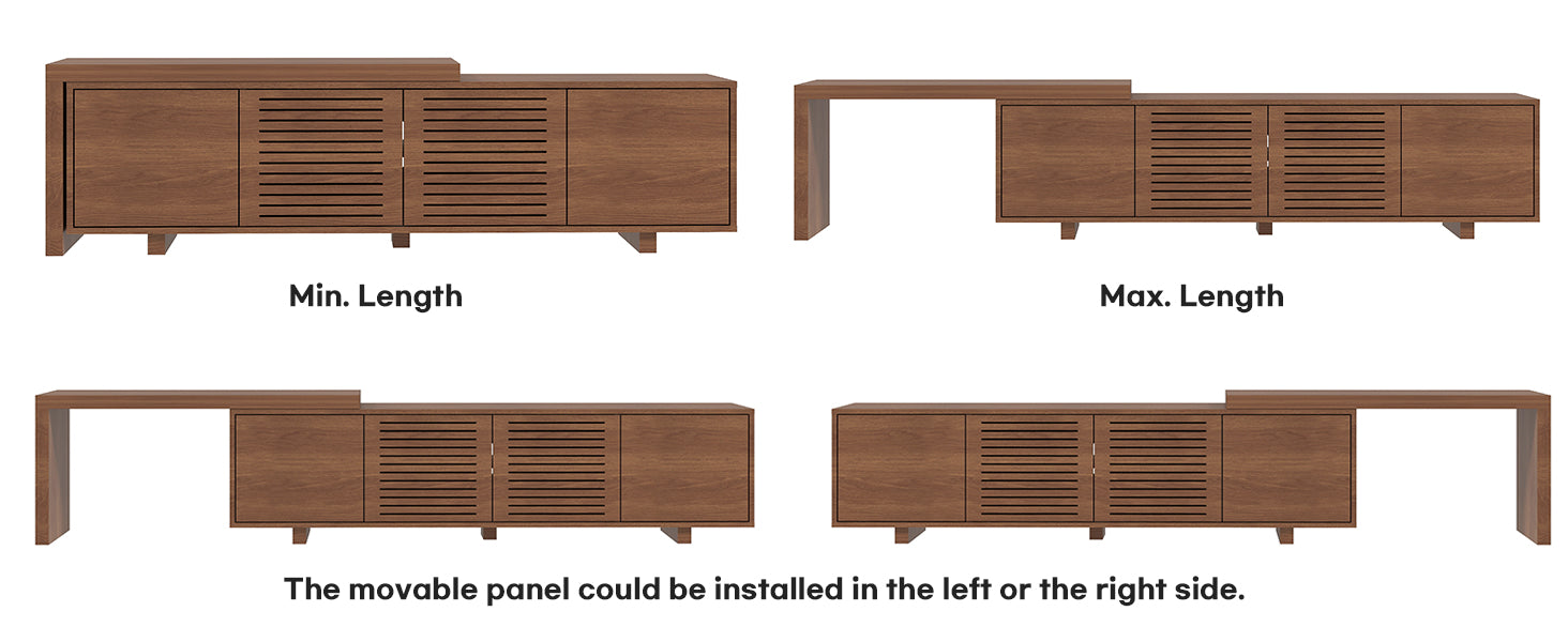 Extendable section slides left or right, offering flexible layouts for living rooms, bedrooms, or entertainment areas.