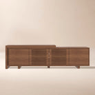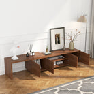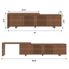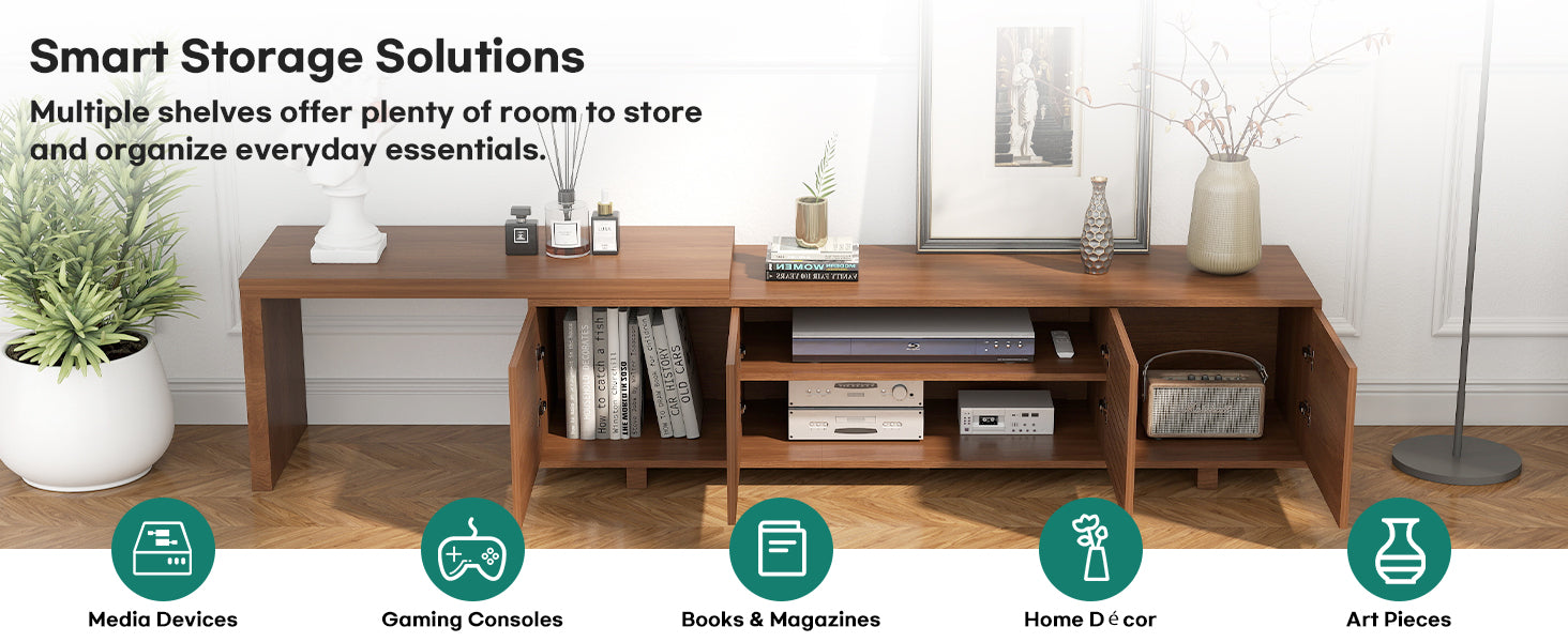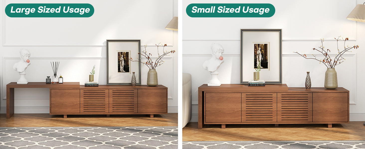 Upgrade your home with this modern extendable TV stand for up to 85" TVs. Adjustable length and reversible sliding section fit any layout, while spacious storage keeps everything organized. Sleek walnut finish adds timeless style to your living space.