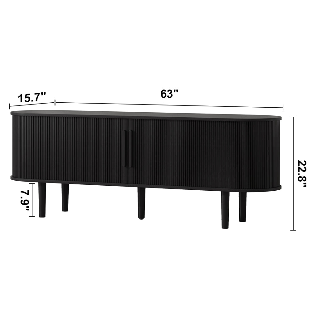 Tille 63" Media Console Mid-Century Modern Black TV Stand for 70 inch TV