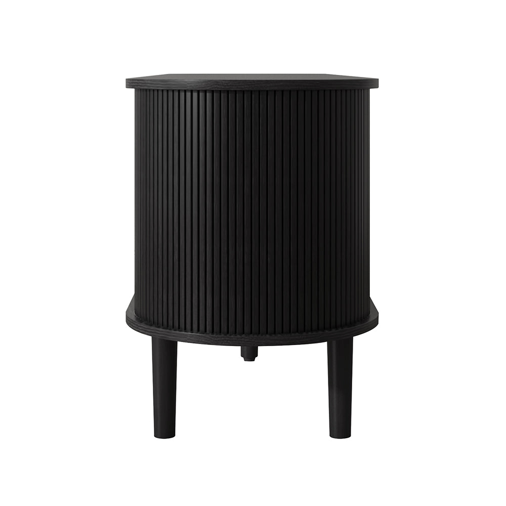 - Slatted tambour-style sliding doors lend effortless visual appeal