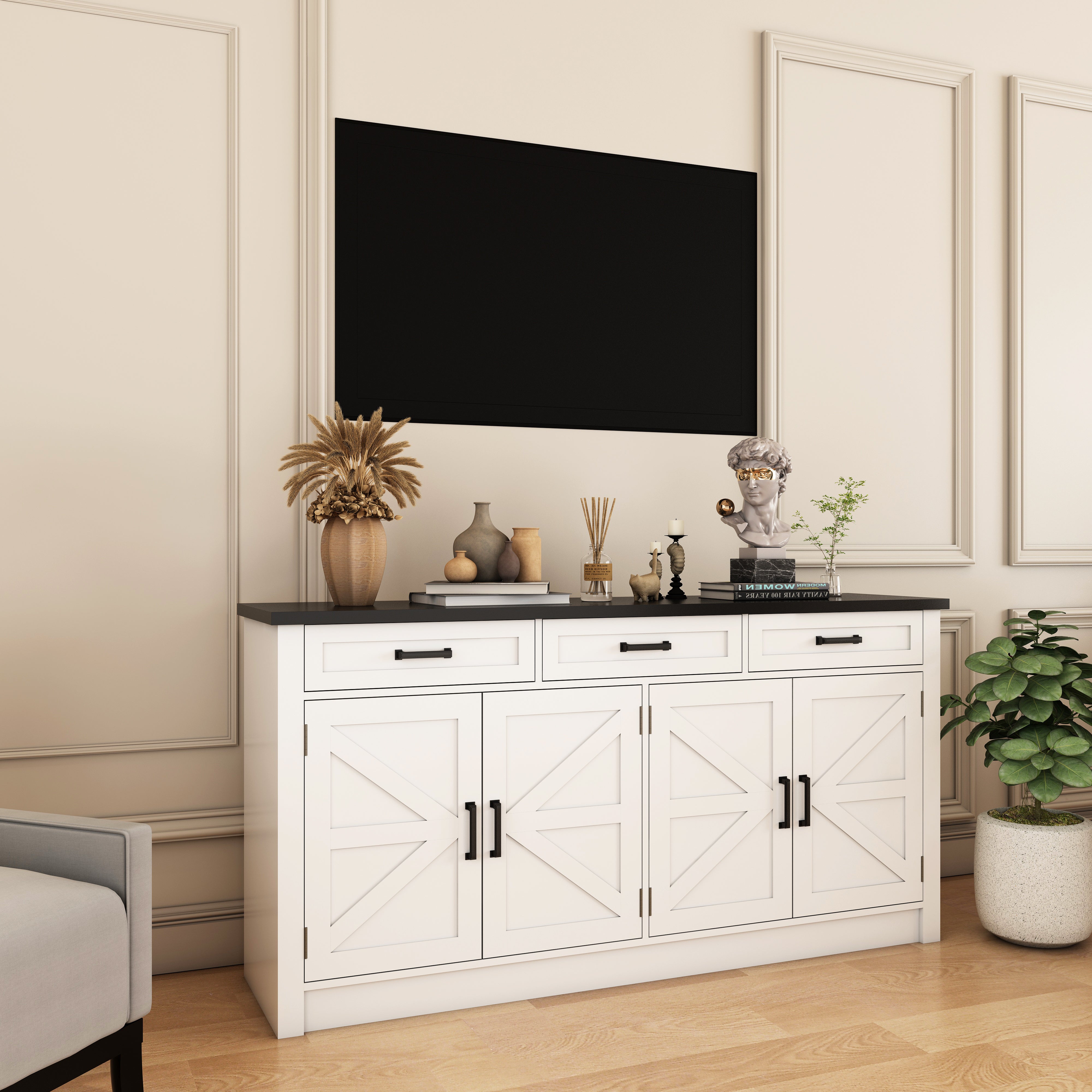 Wixio Modern White Storage Sideboard Cabinet with 3-Drawer