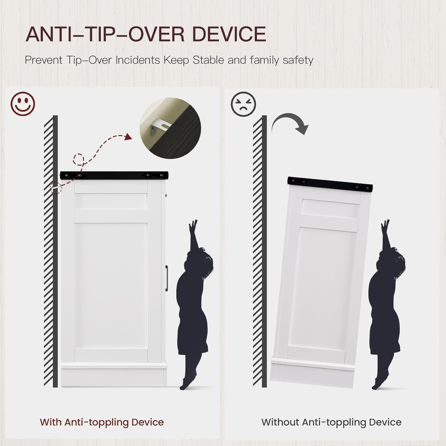 Equipped with anti - tip hardware and soft - close hinges. Prevents accidental tipping for households with kids or pets, and the quiet closures avoid slamming noises, adding a layer of safety and convenience.