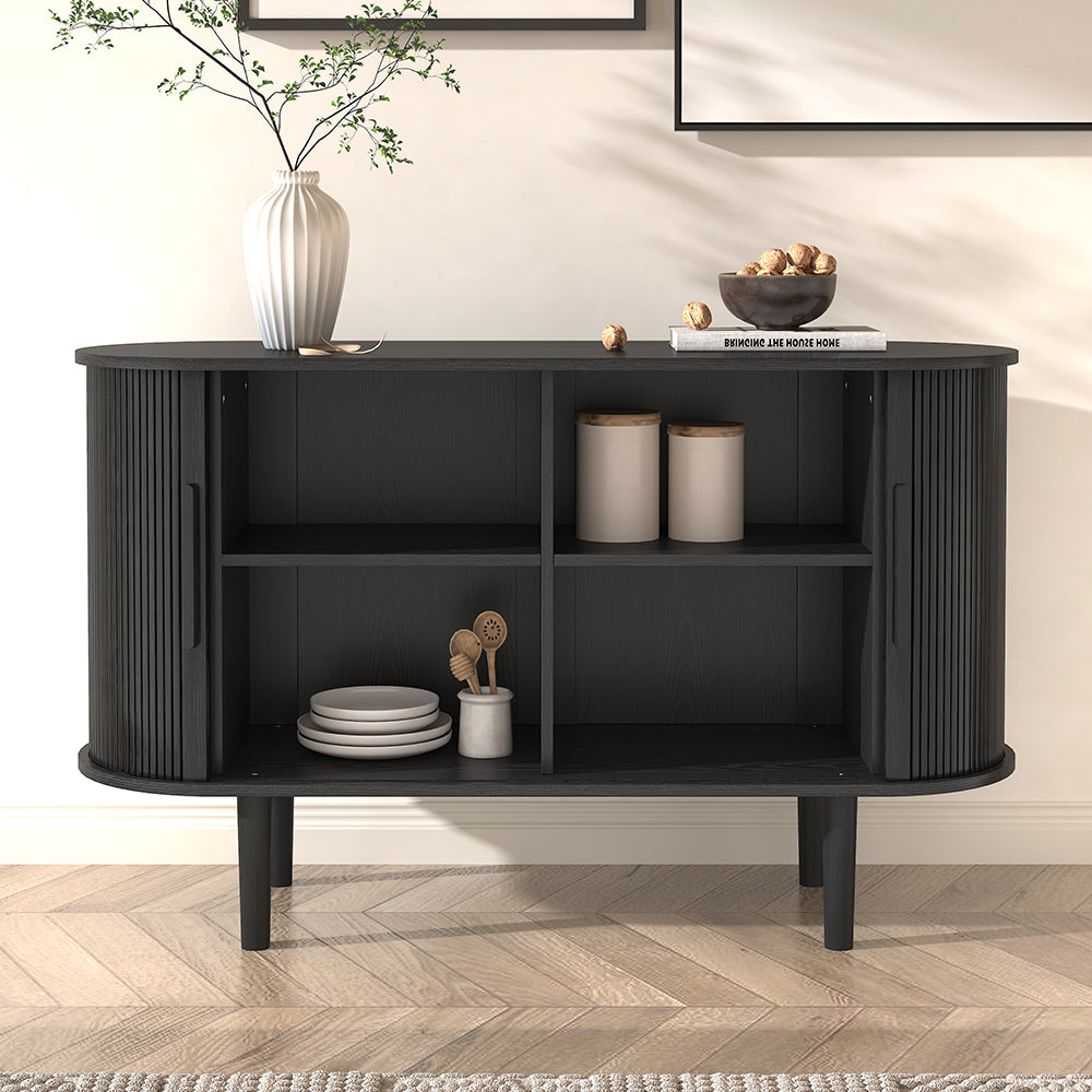 Tille 47" Mid-Century Modern Black Storage Sideboard Cabinet