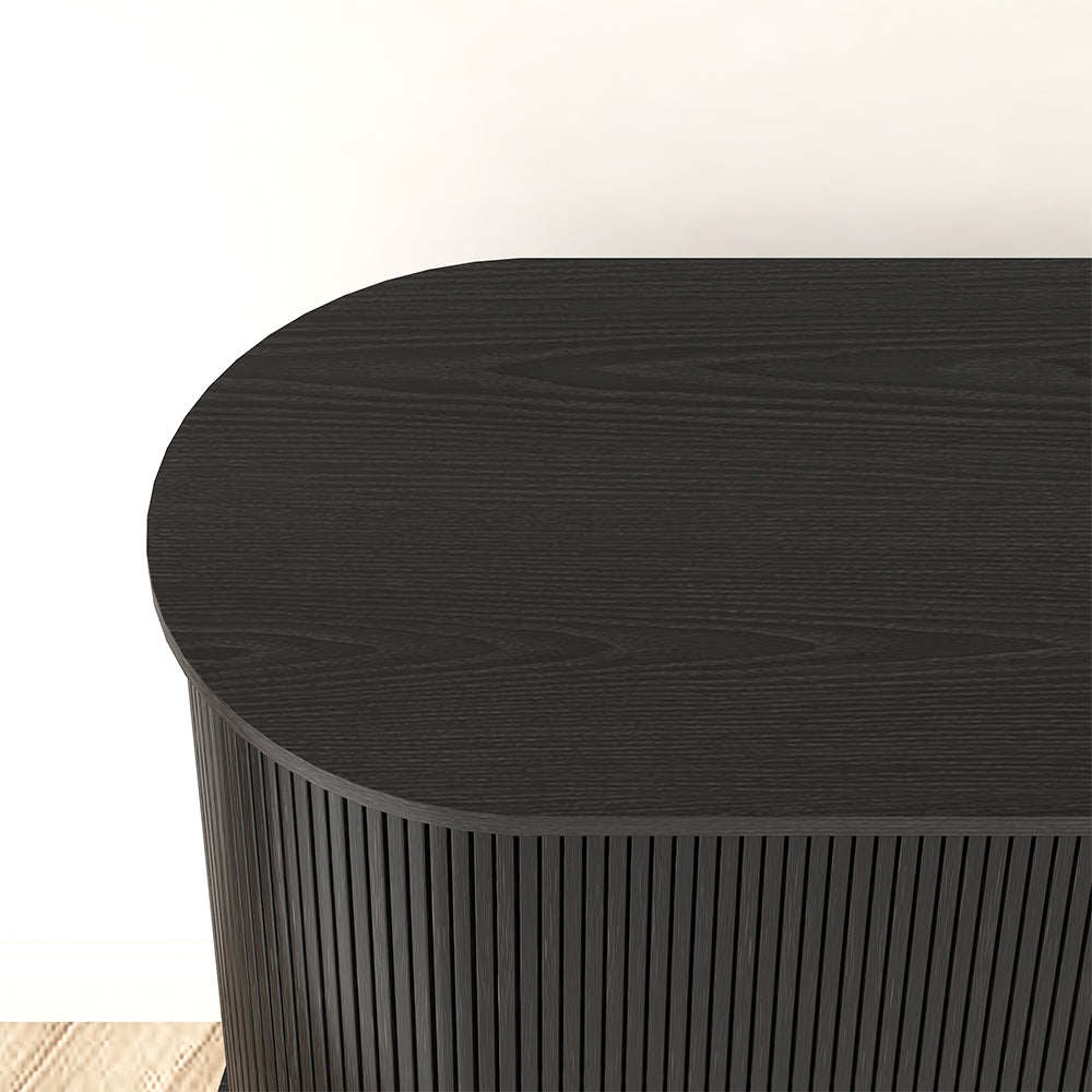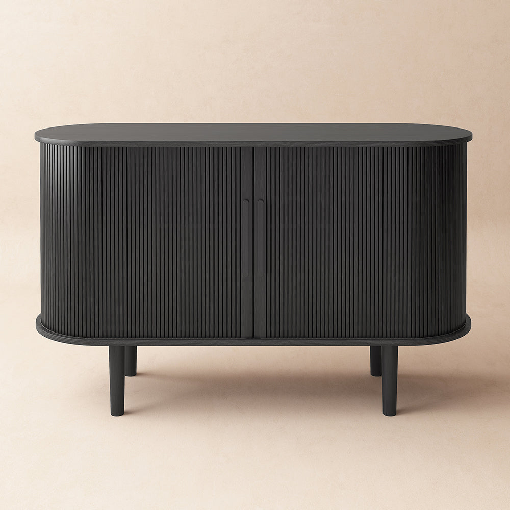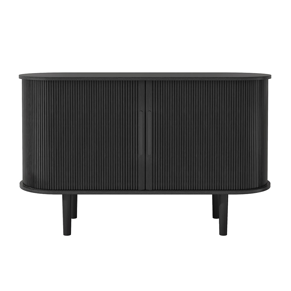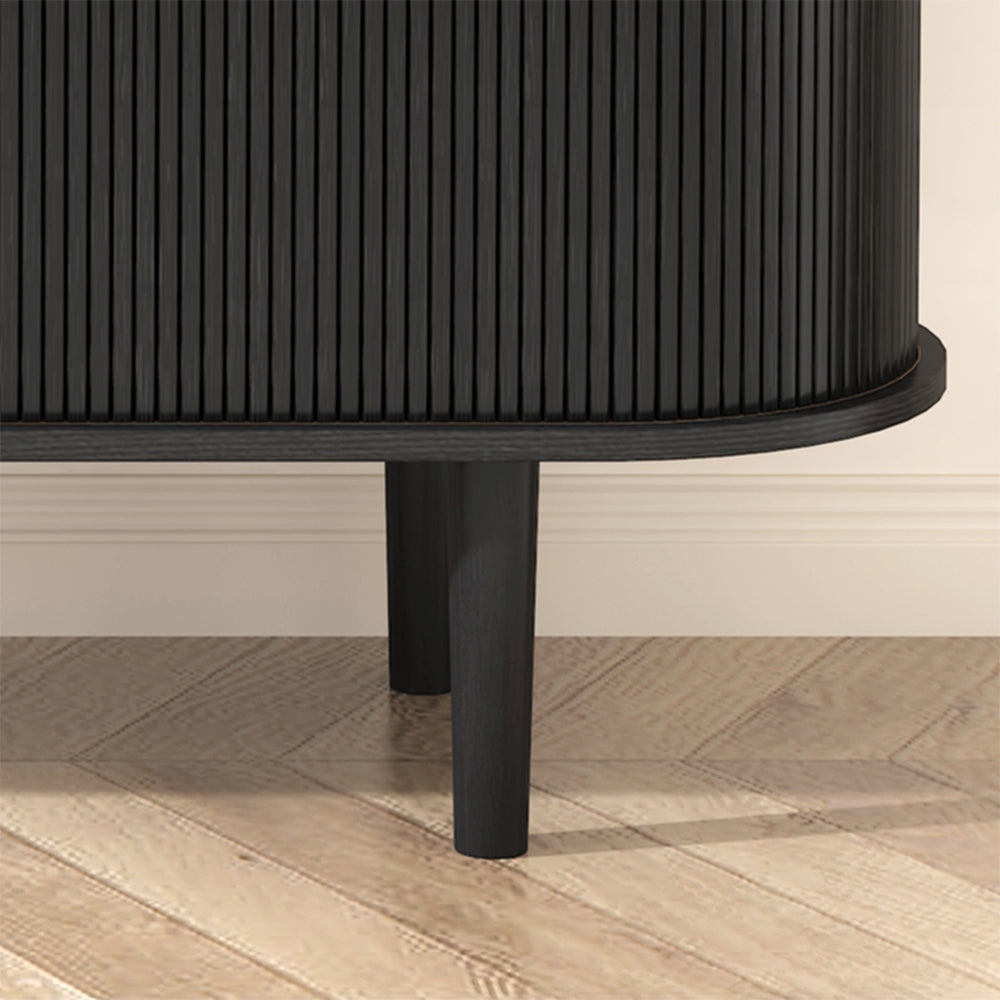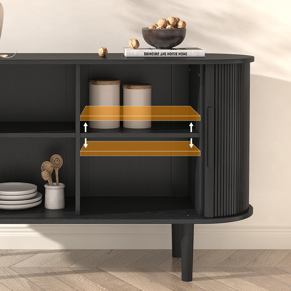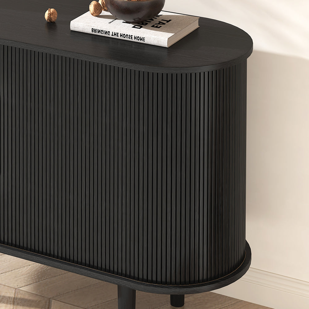 With its dynamic tambour doors, this Tille Collection offers an architectural aesthetic, adding character to any room. This Tille Sideboard features a crisp silhouette emblematic of the mid-century modern aesthetic. Boasting 2 sliding doors with 2 adjustable shelves, it can be ideal to store your crockery and other dining essentials. Founded atop four sturdy legs, the MDF frame ensures steady support and long-lasting option.