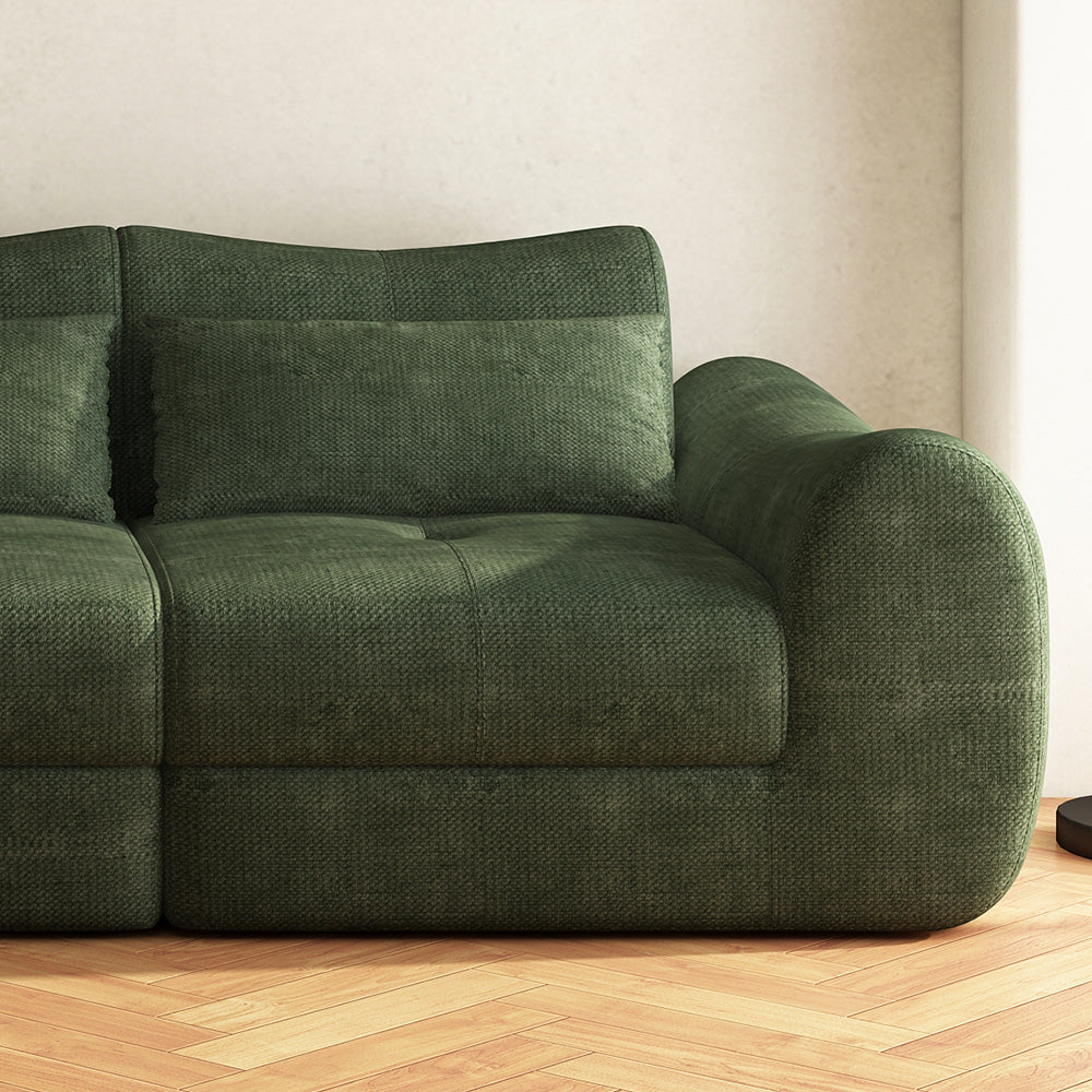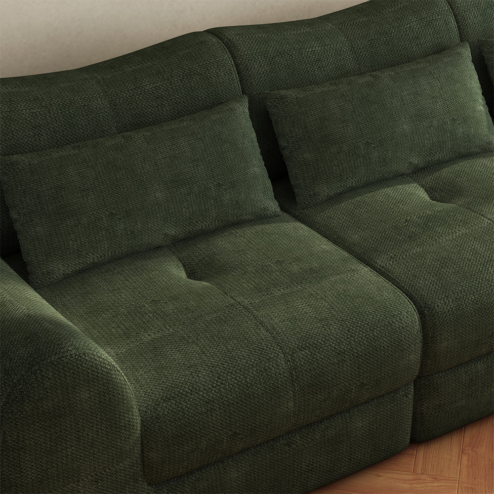 Elevate your living space to new heights with this Binar Modular Sectional Sofa, perfectly adaptable to diverse spaces and needs. Filling with soft and high-density foam, it ensures maximum comfort as you sit back and relax. Effortlessly dividing, this green modular sectional sofa elegantly tackles entryway challenges, merging style with practicality.