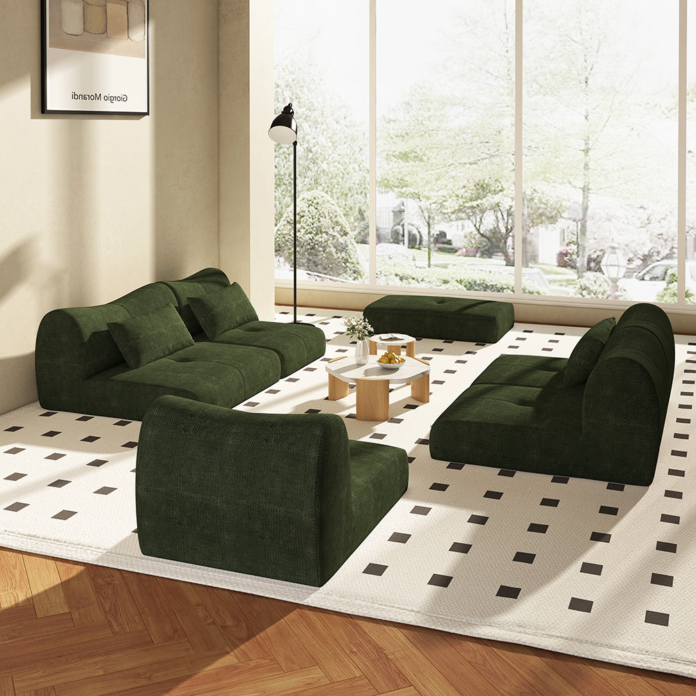Binar 7-Piece Green Fabric Modular Sectional Couch