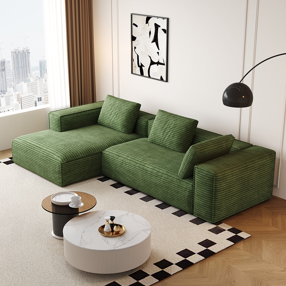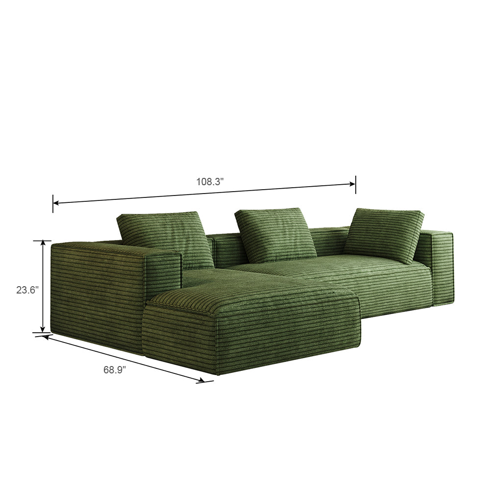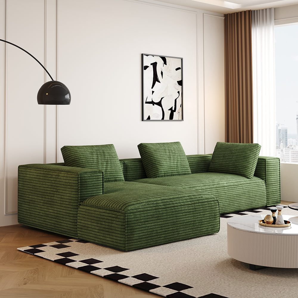 Tanra 106" 2-Piece Green Corduroy Modular L-Shaped Sectional Sofa with Left Chaise