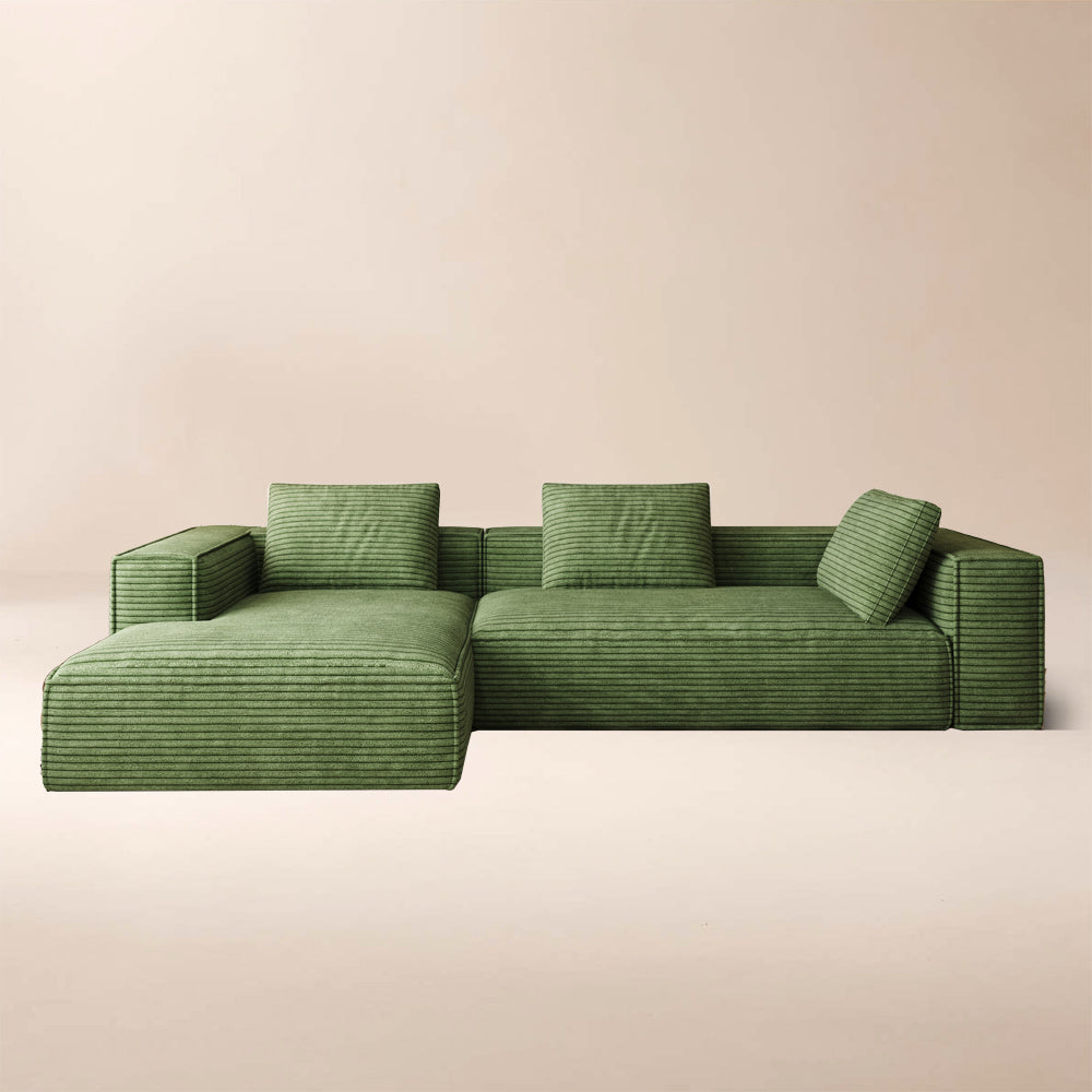 Add a touch of modern sophistication to your living space with this Tanra Sectional Sofa. It features luxurious corduroy upholstery that brings both texture and sophistication to your decor. With a modular large chaise layout L-shaped configuration, it offers good support and comfort, whether sitting or lying down.