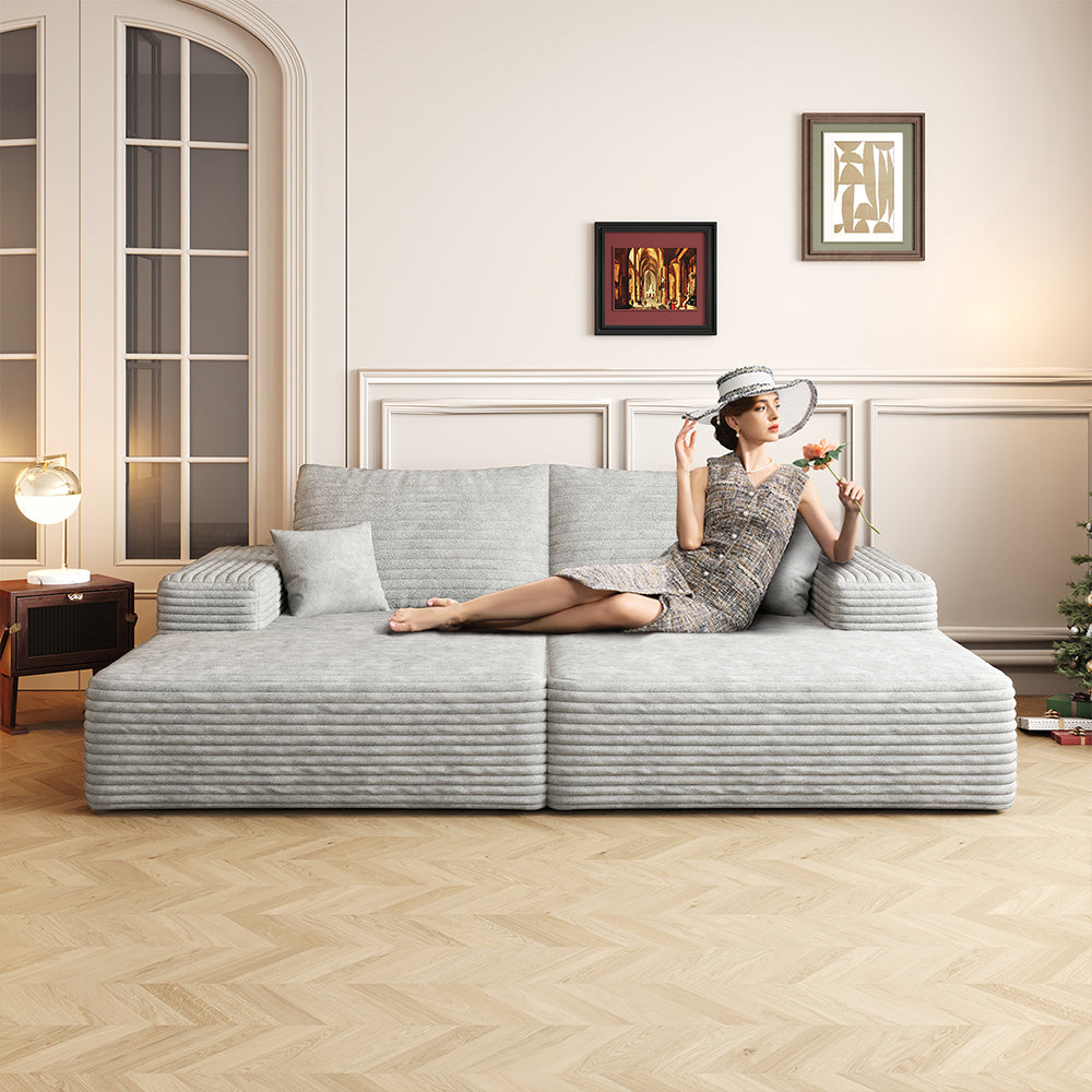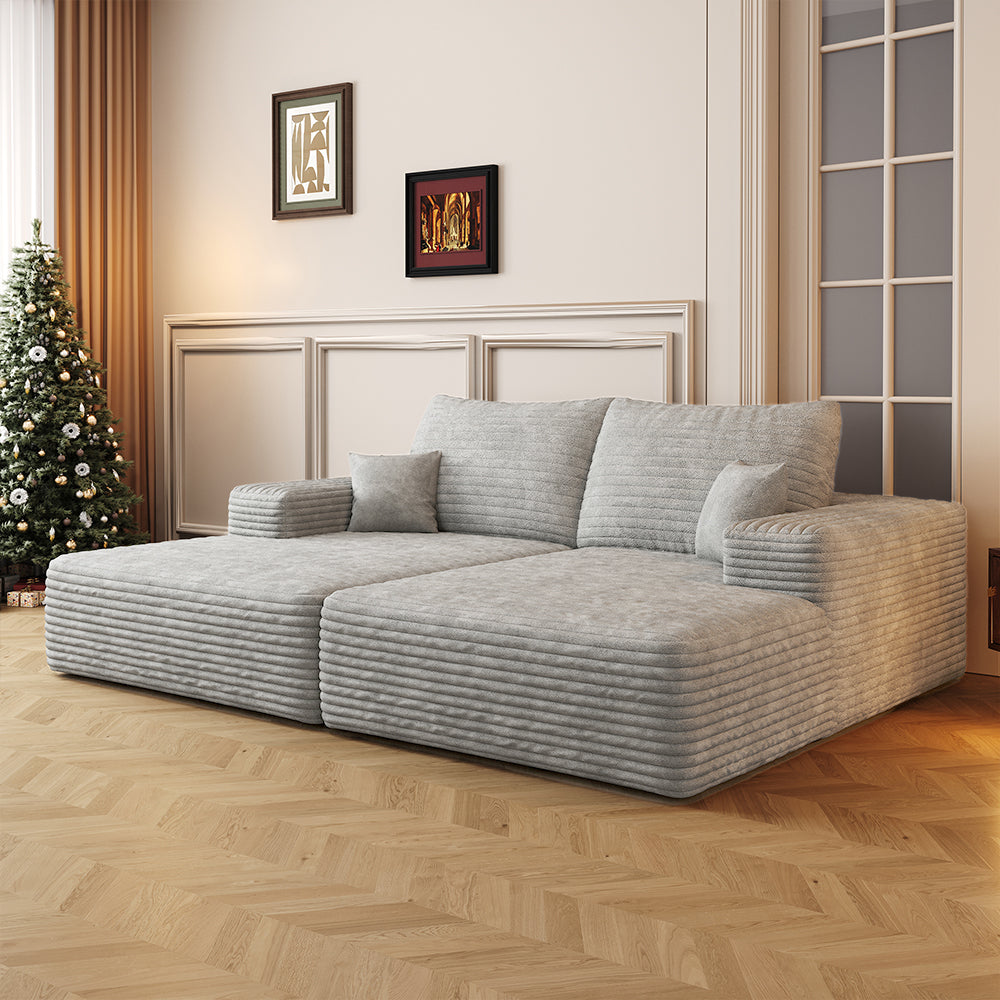 Vada 75" Corduroy Upholstered Double Chaise Lounge Gray Sectional