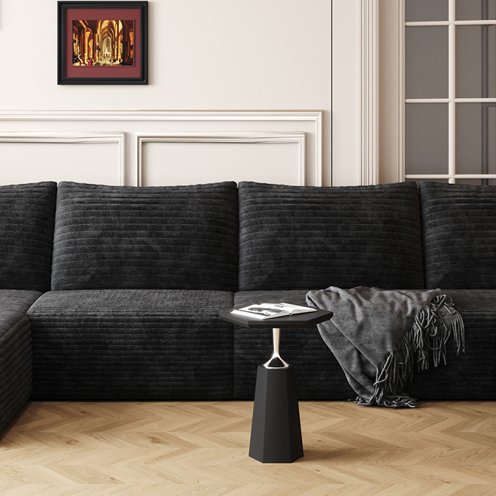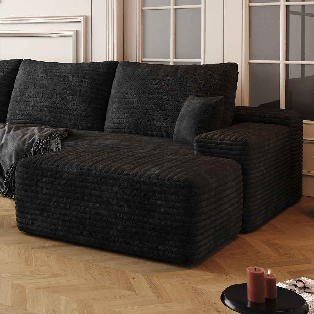 Vada Black 135" Corduroy Modern L-Shaped Corner Couch with Left Chaise&Ottoman Sectional Sofa