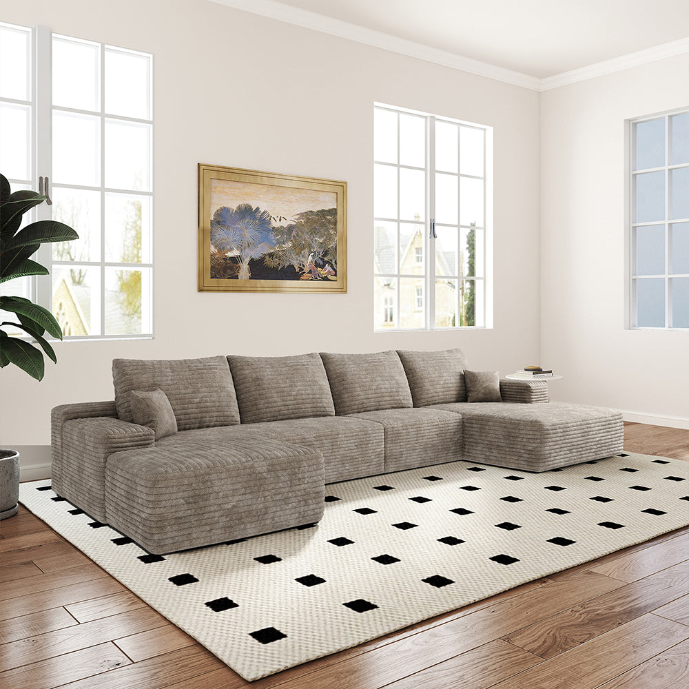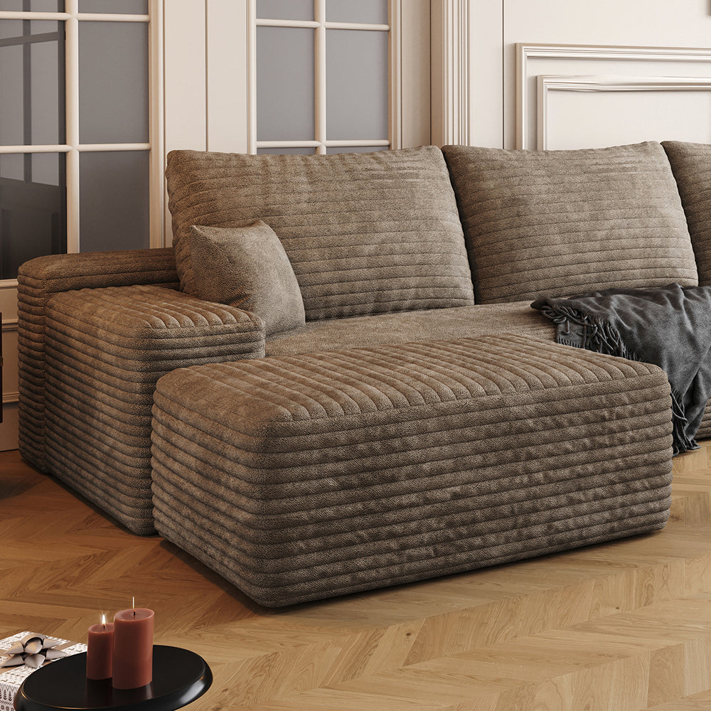 Vada Camel 135" Corduroy Modern L-Shaped with Right Chaise&Ottoman Sectional Sofa