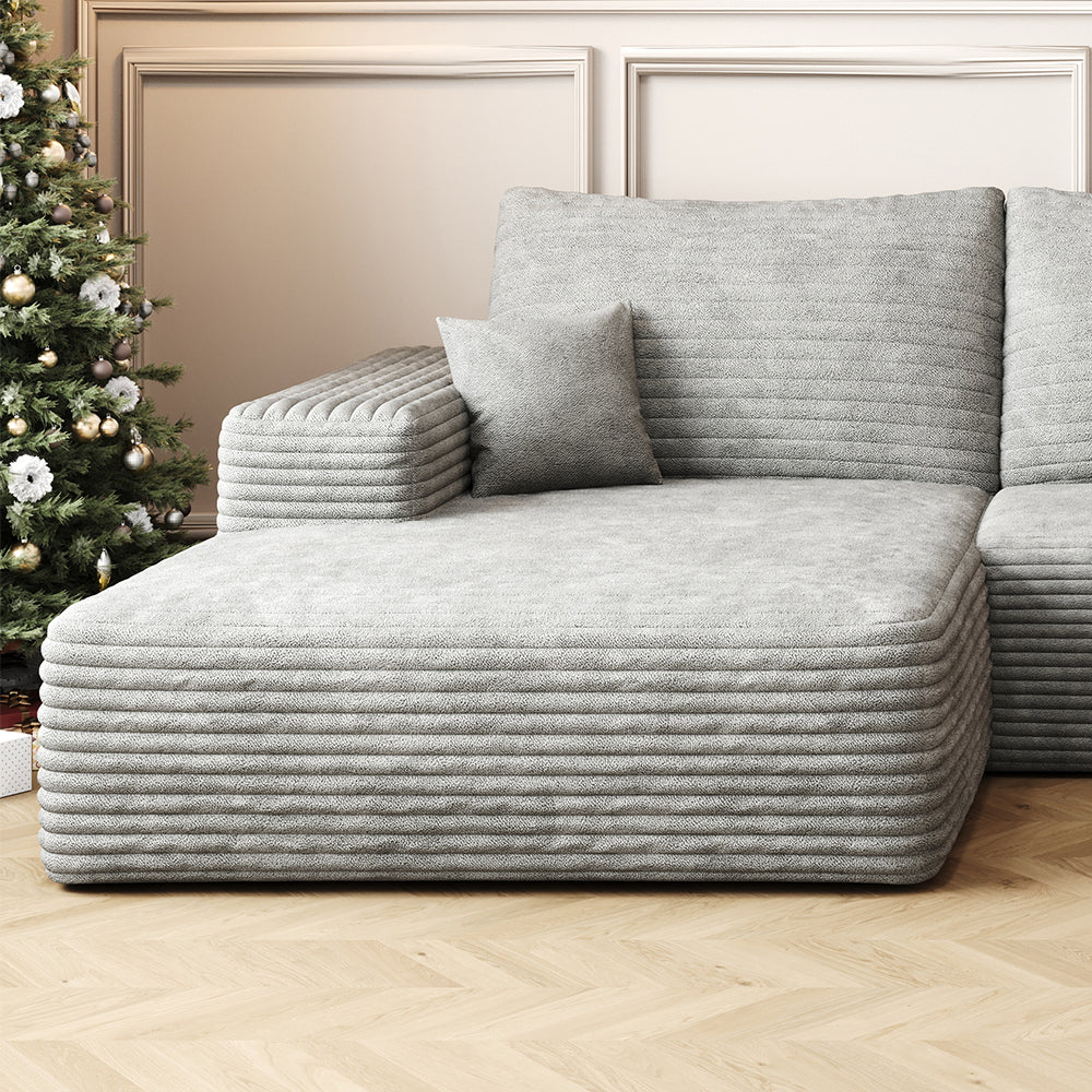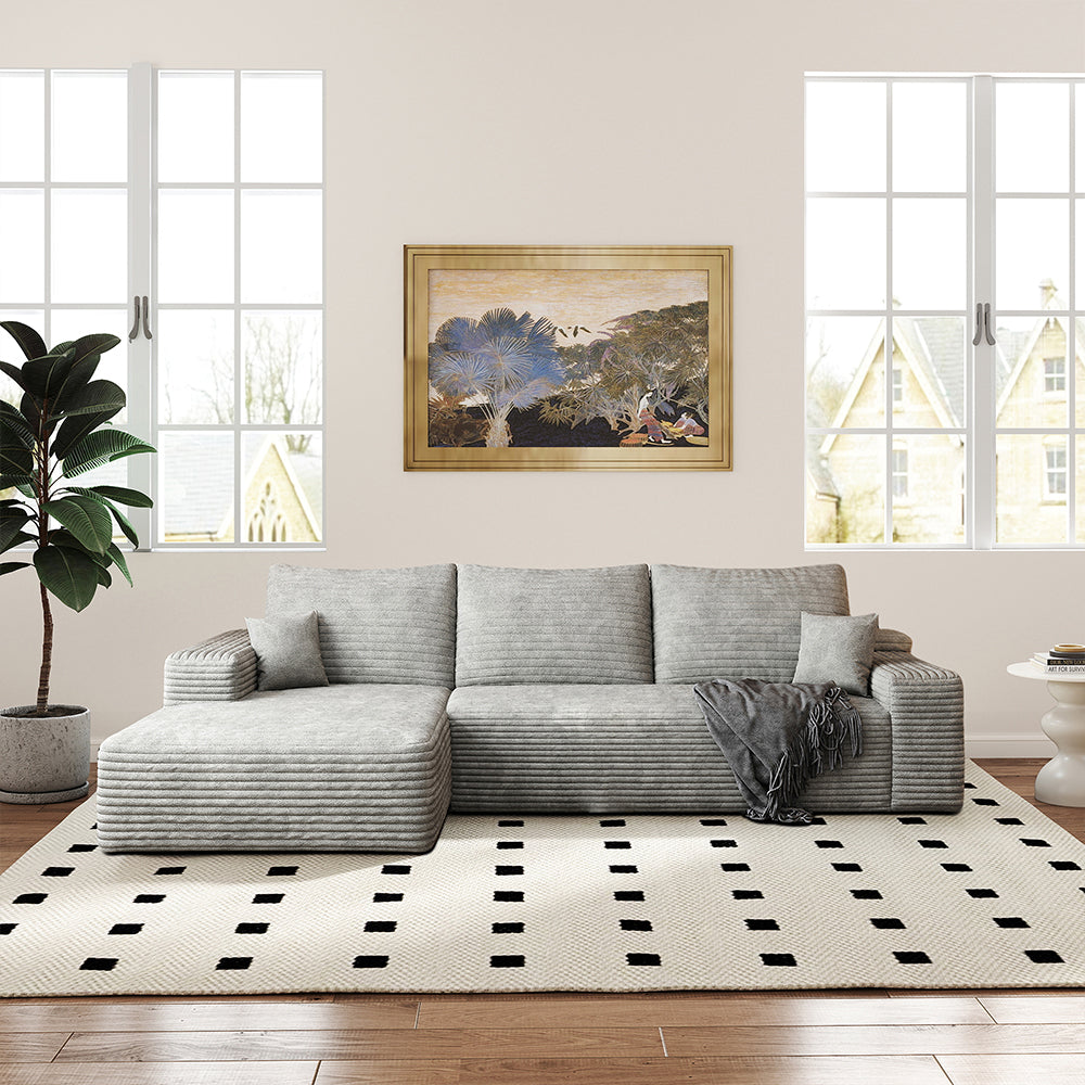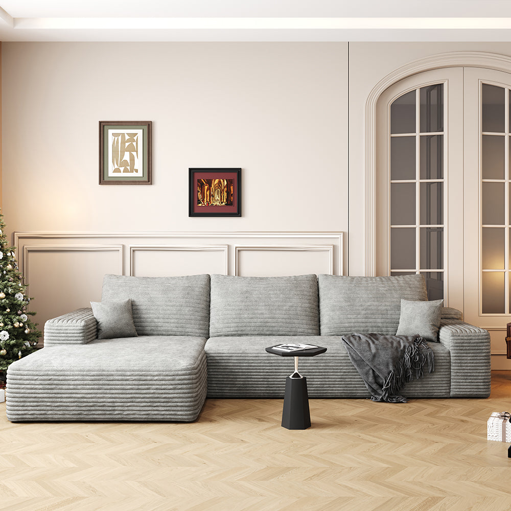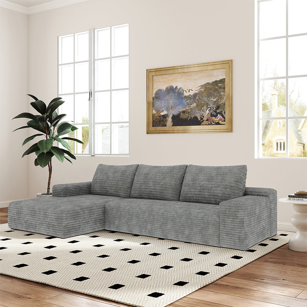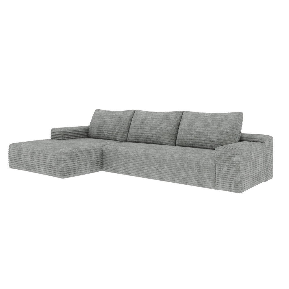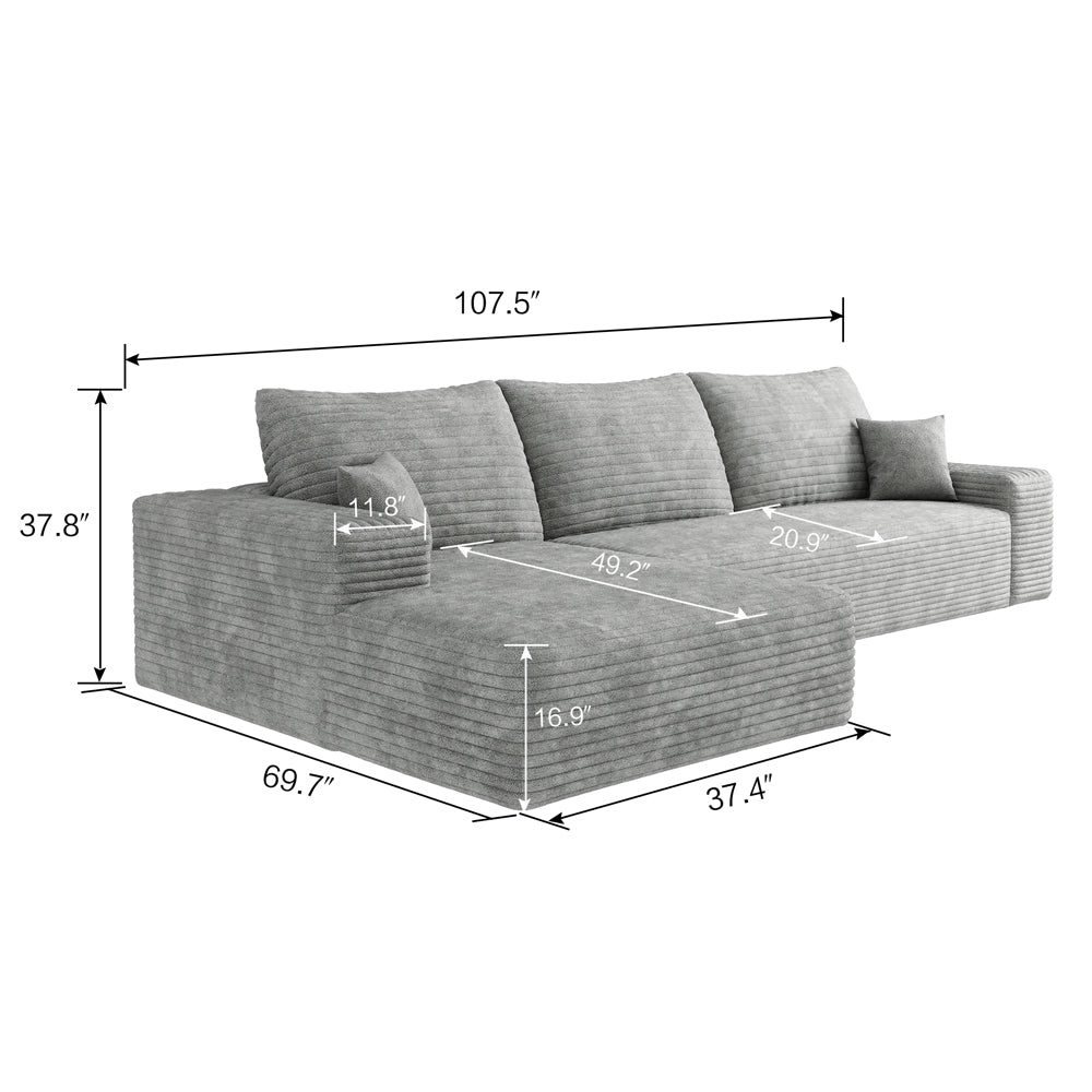 Vada Gray 107" Corduroy Modern L-Shaped with Left Chaise Sectional Sofa