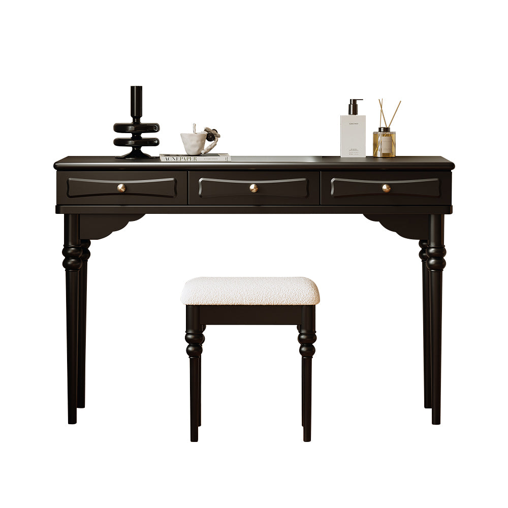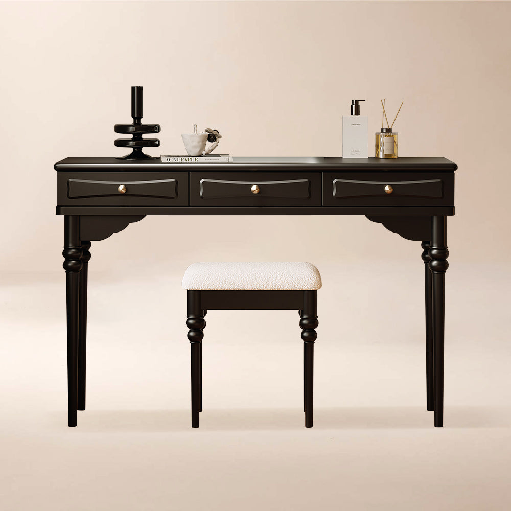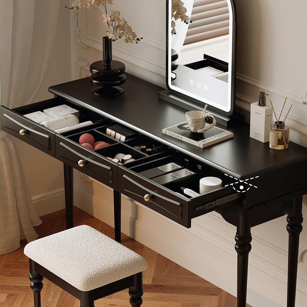 Chash Black Mid-Century Modern Makeup Vanity with 3-Drawer & Seat