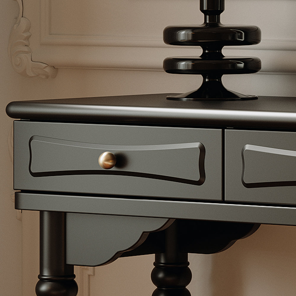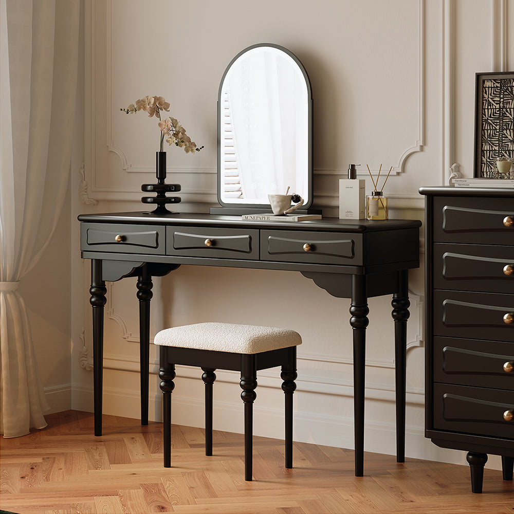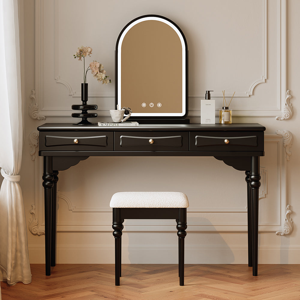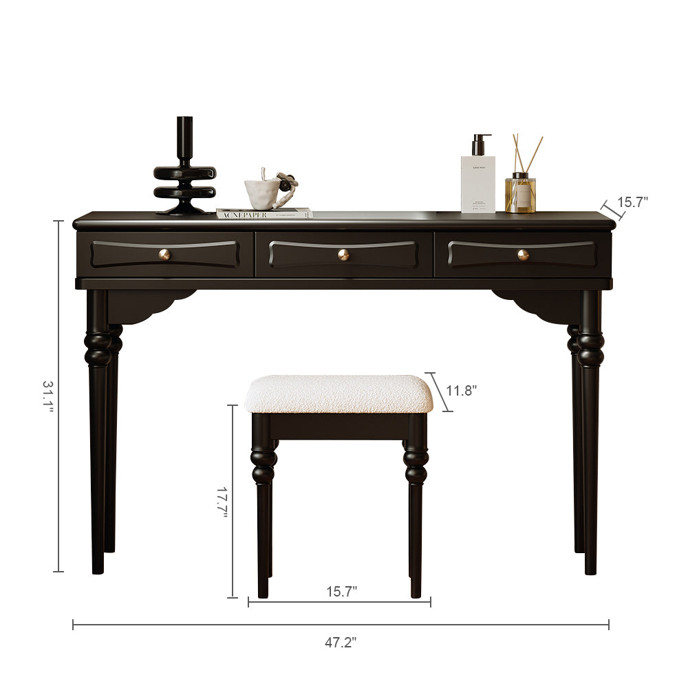 Chash Black Mid-Century Modern Makeup Vanity with 3-Drawer & Seat