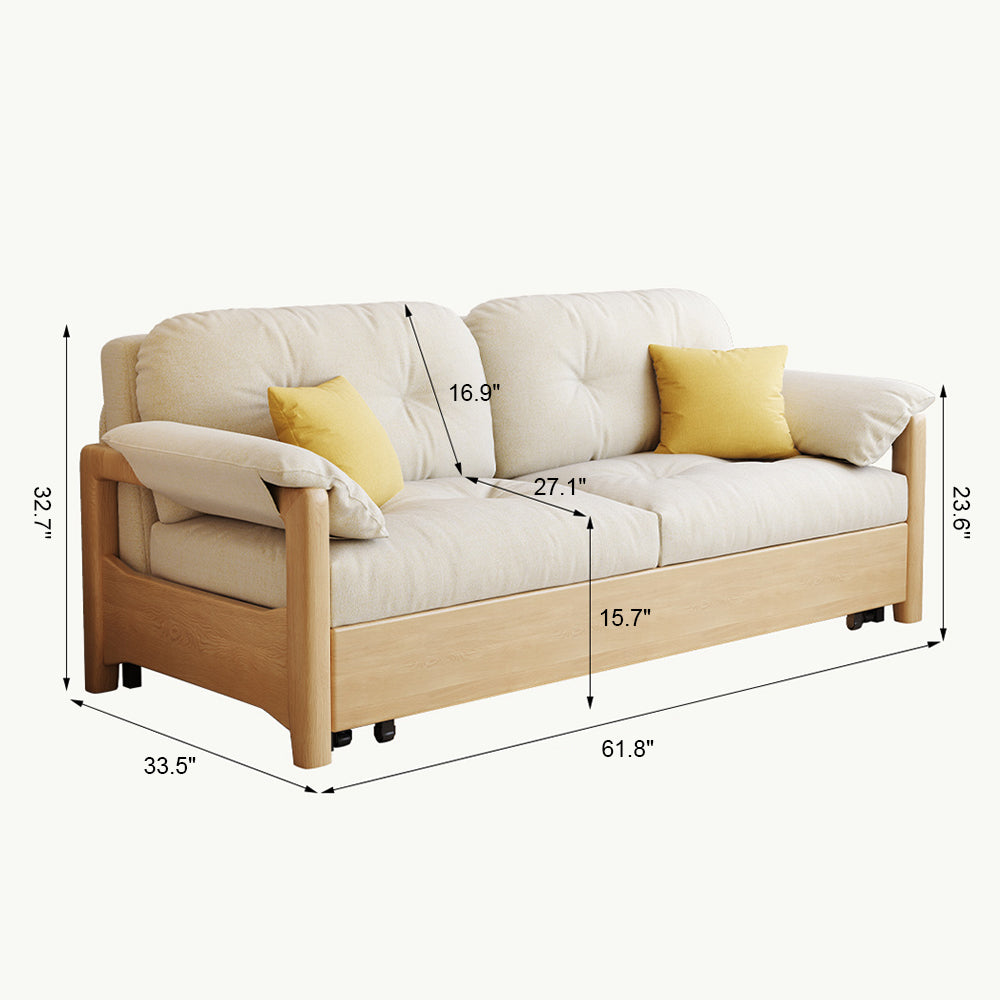 Chul 62" Queen Pull-Out Sofa Bed Beige Cotton Linen Upholstery